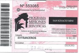 Le ticket coûte 60 pesos par personne pour les étrangers non membre du Mercosur. De 14h45 à 16h45, nous déambulerons entre les ruines imaginant la vie en temps lointain, nous intéressant à l'organisation et au fonctionnement d'une mission. Il y a encore des pans de murs permettant de se faire une bonne idée de ce que pouvait être ce site il y a 200 ans.