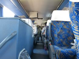 La route est belle, diverses petites villes s'enchaînent dans un bus peu rempli. Un film est diffusé, nous le regardons plus ou moins, cela a l'avantage d'aider à faire passer le temps. En moyenne, les bus parcourent 80 kilomètres en une heure. La plupart du temps, les films diffusés sont du registre "actions". Une boîte snackette et une boisson sont comprises dans le prix.