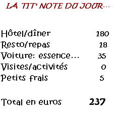 A 19 heures, comme pour Cendrillon, le carillon sonne. Il nous faut partir poser les bagages à l'hôtel et rendre la voiture.