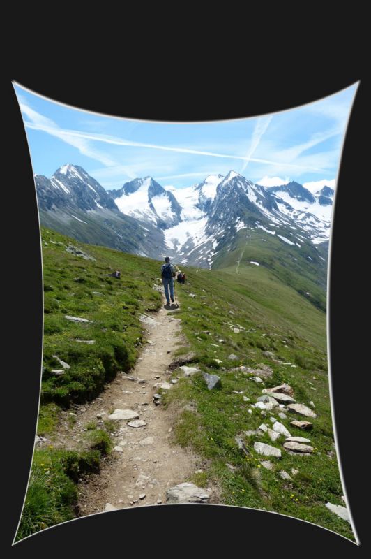 Le panorama offre 21 sommets à plus de 3 000 mètres et appelle juste quantité d'exclamations positives. C'est pupillissime ce type de paysage. Mais où sont les départs des sentiers ??? C'est de nouveau hyper mal indiqué car pas juste à la sortie de la benne !!! Bon nous finissons par trouver et partons en direction de la Schönwiest hütte à 2 266 mètres d'altitude par le sentier 7 rouge mais qui est aussi le 3, le 20 ou le 22 !!! Il est annoncé 1h15 de descente jusqu'au resto. Nous partons à 11 heures et arrivons à 12h15 !!! On ne peut faire mieux comme timing. De bons marcheurs, non passionnés de pixélisation à chaque 2 ou 3 pas, de "Tu l'as vu cette fleurette et celle-là", de "Ohh une petite tête sortant d'un trou"... mettront nettement moins de temps. Ces paysages sont tellement grands, époustouflants, captivants... qu'il nous est difficile d'arrêter de les admirer.