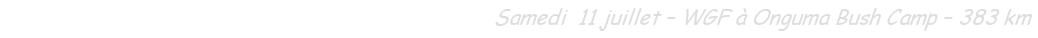 Le parcours est ponctué d’arrêts: photos, ouverture/fermeture de barrières séparant les propriétés et longe le Waterberg. Cela aurait fait trop long de venir y marcher la veille, heureusement que cette idée a été abandonnée. Pour ce faire, il vaut mieux y dormir.