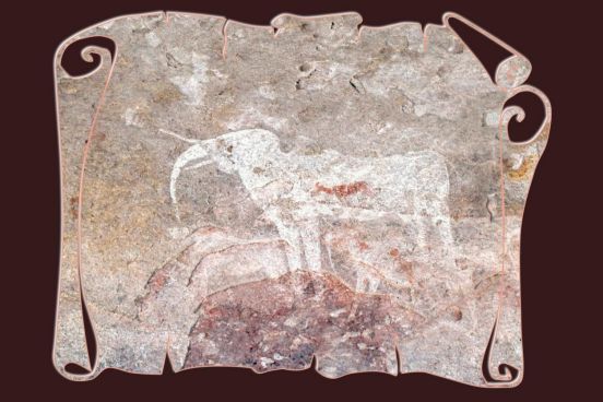 Une marchounette en beaux paysages avec petites grimpounettes, d’après moi mais pas pour la moyenne des autres, et nous voilà devant la grotte en 45 minutes. En réalité, c’est plus une zone couverte par une grande voute qu’une grotte. Les dessins rupestres sont peu nombreux. Un bel éléphant se fait remarquer mais de quand date-t-il, c’est ??? Divers personnages dansent en petit groupe. La datation est estimée entre – 2 000 et – 10 000 ans, donc manque légèrement de précision et de certitude.