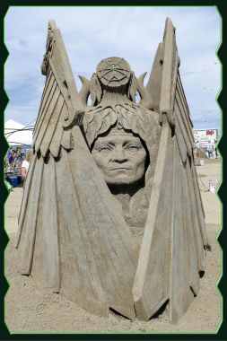 Bon alors, c’est où l’entrée de la sand Sculpting ? Mais ils sont où les panneaux et tout à coup un tout petit nous dit c’était juste là mais trop tard. J’aurai du imprimer le plan. Demi-tour et direction le parking. Il y a du monde mais moins que ce que je craignais en ce dimanche de fin de réalisation des œuvres et donc d’annonce prochaine des gagnants. C’est un concours qui a lieu tous les ans et rassemblent des sculpteurs de divers pays.