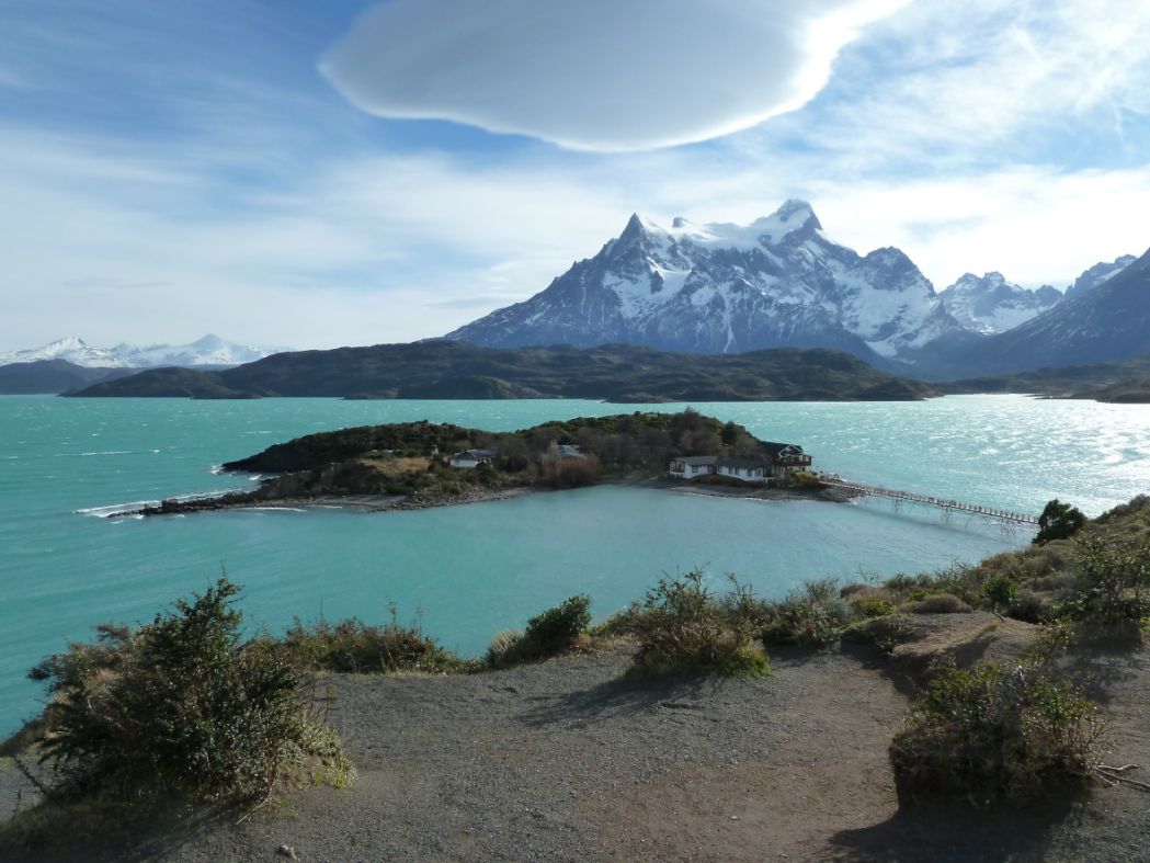 Troisième étape, en route vers le Salto Grande, nous traversons le Rio Paine. Les paysages sont beaux, les eaux ont des couleurs variées: vert, blanc, bleu... L'oeil est attiré à droite, à gauche et s'imprègne de toute cette sauvage et naturelle joliesse. Un petit tour en proximité du salto, sous un vent toujours aussi terrible et nous partons vers notre lieu d'hébergement. Nous admirons particulièrement les beaux nuages lenticulaires.