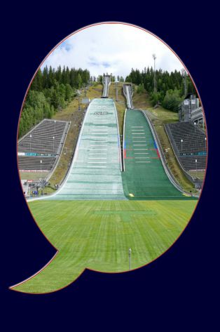C’est au pied du tremplin qu’on voit combien il est haut ! Le départ du petit est atteint à 11h50 et je me demande si cela vaut la peine de tenter le grand. Mais qui marque les esprits au final… Donc, un peu de souffle, d’effort et la vue devient réconfort. La montée à la zone de saut revient à 25 couronnes et permet de bien s’imprégner de la pente. Nous découvrons aussi que nous aurions pu faire sans ces grimpettes car une route monte presque jusque-là. Bon, l’Olympisme, c’est le sport, donc normal d’en faire un peu en ce jour. La descente est rapide et se termine par une mini grimpette des marches accédant à la structure de la flamme.