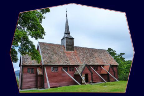En cette église en bois debout, sont visibles de vieilles fresques dont des belles plafonnières, un ex-voto bateau, des pierres tombales... Très peu d’éléments sont très anciens. Nous apprenons qu’au temps du roi Cristian VI, le piétisme fut de mise vers 1730/1740 et du coup les peintures ont été recouvertes de chaux car il ne devait y avoir aucune distraction possible, le fidèle ne devait qu’écouter la Bible lue par le prêtre. Puis, ce courant disparut et les églises purent retrouver décors. Nous l’avons bien appréciée. De plus comme beaucoup d’autres elle bénéficie d’une surplombante superbe vue…