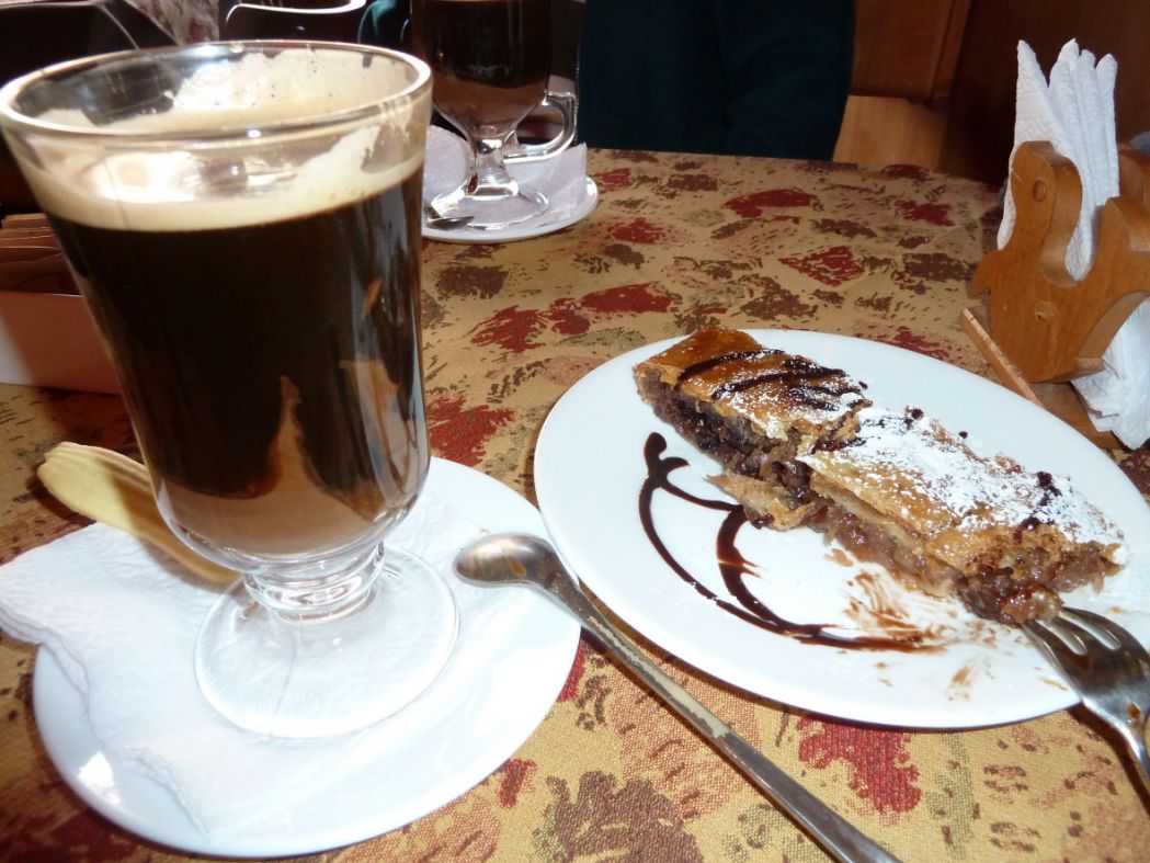 Nous partons, à pieds, découvrir la ville. C'est une ville de garnison avec de beaux bâtiments, une place centrale, un joli kiosque... C'est la vraie ville la plus australe puisque les cités plus au sud sont plutôt des bourgs ou des villages. Comme nous n'avons pas déjeuné, nous décidons de faire un stop café dans une confiteria: la Chocolateria Delikatessen. Nous y dégustons - et le verbe est faible - un excellentissime café moka et un non moins top strudel aux pommes, après un sandwich chaud fromage et jambon, pour 13 520 pesos. C'est un lieu plutôt chic où défilent les personnalités de la ville. Les propriétaires descendent de colons suisses et cela se voit et se goûte dans la boutique. Une de nos adresses gourmandises de référence, en ce voyage ! Nous apprenons que les principaux colons de la région ont été suisses et croates, ce qui se perçoit encore dans les références locales.