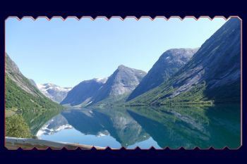 En 2017, une gondola a été ouverte à Loen et elle permet d’admirer les paysages environnants. Le ciel a choisi d’être en beau bleu, donc si nous allions pique-niquer dans les hauteurs… Wouaouhh, il y a du monde garé partout sur la route, le gardien du parking nous annonce un minimum de 2 heures d’attente… Du coup, ce sera bord de lac pour le pique-nique… La lumière est belle, la vue aussi mais c’est quoi cette fumée qui zigzag dans l’air ??? C’est celle du paquebot en arrêt à Olden et qui du coup enfume toute la zone et gâche un peu les photos sous beau ciel.