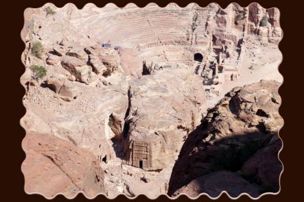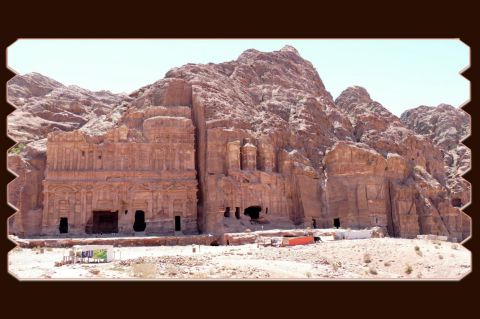 Le long du mont Umm Al'Amr trônent les royales tombes ainsi nommées car plus grandes que la moyenne des autres et ayant pu servir pour des rois. Dans le sens plaine-voie principale, la première est celle de Sextius Florentinus, un gouverneur romain. La deuxième, celle du Palais est la plus large de Pétra et s’orne de 18 colonnes, elle se caractérise aussi par l’ajout d’une construction en blocs en avant de la colline. La troisième, la Corinthienne, s’orne de motifs floraux corinthiens. La quatrième, celle de la Soie ressemble à la Khazneh et surtout ses nombreuses variations de nuances de couleurs font penser à un beau tissu. La dernière, celle de l’Urne, fut creusée pour Malichos II ou Aretas IV vers l’an 70. Au Vème siècle, elle servit de cathédrale car sa grande salle intérieure mesure 18m par 20. La résonnance y est excellente. Au moment où j’y suis arrivée une cantatrice finissait d’y chanter. C’est un bel ensemble que j’ai particulièrement apprécié. Après le tombeau de l'Urne se trouve le sentier permettant de rejoindre le point de vue de droite sur la Khazneh, au mont al Khubta.